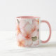 Bring tropical elegance to your everyday moments with this beautifully designed mug featuring soft blush pink frangipani (plumeria) flowers. The petals blend gentle peach, blush, and ivory tones, with hints of golden warmth and fresh green leaves for balance. The interior glaze, handle, and rim in soft pastel pink add a modern yet feminine finishing touch.