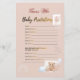 baby shower game prediction sheet BlushAnd pink Playful Baby Shower Predictions Card. blush and pink floral teddy bear prediction daddy and mom will play and wonderful game