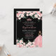 Tiara Watercolor Floral Pink Quinceañera Invitation. This charming design features watercolor blush pink roses and flowers mixed with green leaves and foliage, creating a whimsical yet elegant look. A sparkling pink princess tiara sits at the top, and an adorable girl in a pink sparkling dress appears on the back. Classic serif and script fonts add sophistication, all set against black backgrounds on both sides for a striking, elegant effect. All fonts and colors can be customized.
