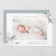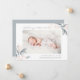 Un élégant faire-part de naissance floral aux couleurs chic pastel est doté d'une seule photo horizontale à fond saigné ou orientée paysage avec des amas de fleurs d'aquarelle et de feuillage botanique aux coins. Personnalisez avec le nom du bébé, les statistiques de naissance et un message personnel, et ajoutez trois photos carrés supplémentaires au dos.