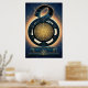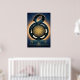 Une représentation artistique d'une bobine de film de cinéma vintage intégrée dans un design géométrique Art Déco complexe. Parfait pour les salles de cinéma à domicile, les salles de médias et les amateurs d'histoire du cinéma classique.