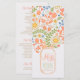 Jolie et romantique pêche - corail - programmes de mariage blanc avec fleurs dessinées à la main, feuilles, branches d'arbres et coeur d'amour. Carte de programme parfaite pour votre campagne rustique ou thème de mariage vintage avec décoration de bocal de mason.