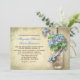 invitation unique de mariage rustique et d'âge. Bleu fleur sauvage mât bocal avec ruban bleu et papillons et toile stylisée vieil arrière - plan. Je suggère le papier "Lin" ou "Felt" pour cette conception.