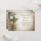 Romantique arrière - plan rustique en bois et pot de maçon avec fleurs blanches invitation à la douche nuptiale. Je suggère un beau papier de texture de lin pour ce design.