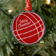 Boule ronde ornement de Noël arbre de Noël. Personnalisez avec du texte ou une photo de vacances personnalisés au dos. Un ornement haut de gamme avec ruban. Idée cadeau de vacances mignonne pour le joueur et les fans.