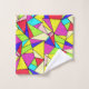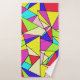 Je regardais Bauhaus suivi de Mondrian, et c'est arrivé. Oups ! Un mur de jolis triangles multicolores fait office de serviettes de bain pour tout décor. Conseil design; Avoir une salle de bain neutre avec ces accessoires vifs!
