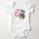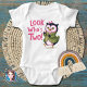 Célébrez le deuxième anniversaire de votre petite fille avec style avec notre adorable costume de bébé "Look Who's Two"! Dotée d'un charmant thème de hibou, cette décoration colorée et d'inspiration nature est parfaite pour votre hibou de fête. La combinaison de teintes vertes, roses et violettes, ainsi que de mignons accents d'oiseau et de ballons, fait de ce vêtement un choix délicieux pour la journée spéciale de votre fille de deux ans.