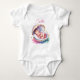 Tee-shirt bébé une pièce personnalisé pour Baby Shower fille, procurez-en un pour chaque membre de la famille pour les faire se sentir spéciaux. Douce et mignonne couleur pastel rose, corail, sarcelle, bleu et or thème baby shower côtier marin. Une petite fille qui dort à l'intérieur d'une conque et coquillage or. Jolies fleurs tropicales aquarelles fantaisistes. Hippocampe aquarelle, dollar de sable, fleurs tropicales et étoile de mer.