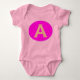 La conception pour ce babygrow se compose d'un monogramme/d'A. initial. La couleur de lettre est or pâle, l'ellipse est magenta. Le reste de l'article est rose.
