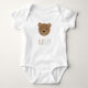 Une adorable illustration d'ours occupe le devant de la scène dans ce design moderne et mignon. Sexe neutre. Facile à personnaliser avec le nom du bébé.