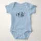 Chemise bébé monogramme en bleu avec monogramme bleu marine et polices de caractères script.