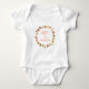 Un design moderne et chic pour le petit à porter pour sa première action de grâce. Il a une couronne composée de feuilles d'automne, de vignes et de glands avec le texte qui dit "1er Thanksgiving de bébé." Vous pouvez personnaliser avec le nom de l'enfant ou son propre message.
