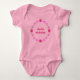 Ce mignon costume de bébé présente l'image art numérique d'un groupe de fleurs et de papillons, chacun d'une nuance rose pour représenter une petite fille. Les fleurs comprennent Dahlias, nénuphars, ne m'oubliez pas et Chrysanthemums. Les fleurs et les papillons sont disposés en cercle et il y a du texte personnalisé dans le cercle pour que vous puissiez le personnaliser avec le nom du bébé ou un message.