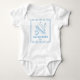 Le maillot de corps de bébé de ce garçon à thème de ski mignon et moderne présente des illustrations dessinées à la main en bleu doux, dont des skis, des bâtons, une beanie et une biberon douce, encadrées par une bordure de doodle bouclés et ludique sur un arrière - plan blanc immaculé. Un choix unique et charmant pour les parents qui aiment les pistes, le confort des chalets de ski et la fête en hiver.