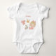 Dessin Whimsical d'une petite fille blonde aux cheveux, blocs abc, un bib et une tenue. Vous le personnalisez avec le nom de votre bébé en haut. Fille aux cheveux foncés également disponible.