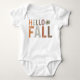 Ce design sur le thème de l'automne accueille chaleureusement la saison d'automne avec l'expression "Hello Fall". Les mots sont arrangés dans une disposition simple mais visuellement attrayante, avec "Hello" placé au-dessus de "Fall". Chaque lettre de l'expression est présentée dans une police grasse et bloquée, avec une texture légèrement désespérée, lui donnant un look rustique et patiné qui complète le thème automnal.