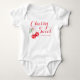 Habillez votre tout-petit avec style avec ce body personnalisé "Cherry Sweet" pour bébé. Avec des cerises à l'aquarelle nouées avec un délicat ruban de satin rose et une élégante écriture, ce design inspiré des coquettes peut être personnalisé avec le nom de votre bébé pour un touche vraiment unique. Parfait pour les cadeaux de baby shower, les photos de nouveau-né ou pour une utilisation quotidienne. Également idéal pour être exposé dans le cadre d'une décoration de ligne de vêtements pour baby shower - une façon charmante de mettre en valeur votre thème "Cherry on Top". Se coordonne parfaitement avec les invitations, les cartes de remerciement, le papier d'emballage et la décoration de fête assortis de la collection complète. Disponible en plusieurs tailles et couleurs de tissu.