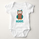 Il présente une illustration originale d'un hibou de dessin animé bleu et marron, avec HOOT dans une police amusante "globes oculaires". Parfait pour les amateurs de chouette préférés ! Ne vois-tu pas ce que tu cherches ? Vous avez besoin d'aide pour la personnalisation ? Cliquez sur "Demandez à ce concepteur" pour créer un costume bébé pour vous !