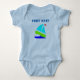 Stylish bébé un morceau romper, avec un pochoir coloré comme des graphiques d'un voilier. Le texte en gras bleu indique Chef Mate, et peut être personnalisé pour lire ce que vous voulez. L'idée cadeau du mignon petit garçon.