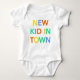 C'est une chemise mignonne et colorée pour votre petit. Il dit New Kid en ville.