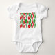 Ce maillot de bébé a un motif répétitif d'ovales en rouge et vert avec des ovales blancs éparpillés le tout sur un champ de blanc.