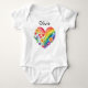 Ce body bébé mignon présente une image colorée d'un cœur arc-en-ciel avec des fleurs, dans un style aquarelle. Cliquez sur 'Personnaliser' pour ajouter le nom de bébé au-dessus de l'image, pour une touche finale individuelle.