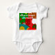 Ce body pour bébé comporte un design de Noël représentant un collage d'un sapin de Noël, un ornement, une chaussette, un cadeau et un bonhomme en pain d'épice.
