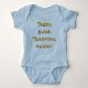 Je trouve ce body tres cool et du bon qualité. Il faut quand même commander 1 taille de plus car a mon avis le premier que j'ai commandé pour un bébe de 6 mois était trop pétit. Zazzle m'a remplacer pour un taille de plus très rapidement (12 mois) et c'était parfait! Grand merci pour ca á Zazzle! Au niveau de l' impression; très bien, couleurs superbe et jolie.