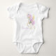Bodysuit avec un design unicorne mignon sur un arrière - plan rose et lilas.