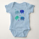 Un mignon costume de bébé garçon d'une pièce avec d'adorables graphiques d'éléphants à motifs bleu, turquoise et vert menthe et des coeurs colorés. Customisez pour ajouter votre propre texte.