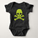 Ces tee - shirts graphiques et d'autres objets sont ornés d'un simple crâne et d'os croisés dans une couleur vert toxique. Bon pour les thèmes gothique, Halloween et pirate.