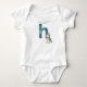Loyal and lovable, our Letter H baby bodysuit features a friendly husky puppy sitting proudly beneath shimmering Northern Lights. The husky wears a cheerful teal collar that coordinates beautifully with the aurora borealis colors dancing across the arctic sky. This watercolor illustration captures both the husky's warmth and personality alongside the celestial magic of northern nights—perfect for dog-loving families and anyone who appreciates the faithful companionship of these magnificent arctic breeds.