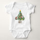 Gender Neutral Christmas baby cloth titled "My First Christmas" in a form of a Christmas tree decorated with cute santa clauss, raindeer, angel, sock etc. Customized name of the kid is in the form of tree trunk.