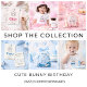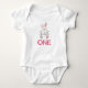 Cute Pink Bunny Girl's First Birthday Bodysuit Simple modern and very cute pink bunny 1st birthday t-shirt featuring a playful bunny illustrations,and modern script typography. Perfect for a sweet girl’s first birthday party. Personalize name. Coordinated with a range of party supplies, ages, pink and blue. Contact me if you would like changes or additions products using the same design.
