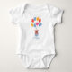 Mignonne Teddy Bear Blue Balloons Boy Baby Bodysuit. Un joli dessin d'un ours en peluche avec des ballons bleus, rouges et jaunes. Ajoutez votre nom ou effacez-le.