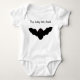 Ce bébé est muni d'une chauve-souris vampire déplaisante aux yeux rouges maléfiques et aux crocs blancs tranchants. Ce design amusant est parfait pour Halloween et devrait amuser les enfants et les adultes. Il y a un texte personnalisable qui dit "Ce bébé mord en arrière" ce qui rend ce design parfait pour un usage quotidien et particulièrement bon pour Halloween.
