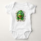 Cette adorable tenue de bébé présente un design ludique d'un dinosaure coloré émergeant d'une fissure dans le sol. Le joyeux dinosaure, aux écailles vert vif et à l'expression conviviale, ajoute une touche de fantaisie au tissu doux. Entourée de nuages ludiques et de fleurs minuscules, la scène capte l'essence de l'aventure et de l'imagination, parfaite pour les petits. Ce charmant costume de bébé permet non seulement de garder les bébés à l'aise, mais aussi d'éveiller joie et créativité, ce qui en fait un cadeau idéal pour tous les jeunes passionnés de dinosaures !