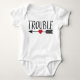 Double Trouble Twins Bodysuit - Habillez vos bébés jumeaux dans le style avec cette cheeky double trouble double maillot de corps jumeau. Imprimé sur le devant le mot "Trouble" et une flèche avec un coeur. Trouvez la combinaison avec le mot "Double" et la flèche inverse dans notre magnifique collection de vêtements bébé pour jumeaux. Le cadeau de baby shower idéal pour les futurs parents de jumeaux