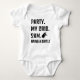 Un bodysuit Party At My Crib pourrait présenter un design amusant avec des graphismes colorés et du texte, fait d'un matériau confortable et extensible avec des fermetures faciles pour les changements de couche.