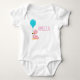 Ce body pour bébé présente un magnifique flamant rose avec un ballon bleu. Le nom de bébé est écrit en jolie police rose. Personnalisez le vôtre dès aujourd'hui !