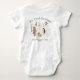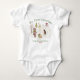 Ce vêtement de bébé Mon premier Noël est la façon parfaite de commémorer le 1er Noël de votre bébé! Le design comprend une adorable scène de patinage sur glace d'animaux de la forêt d'aquarelle avec un bonhomme de neige, un ours et d'autres animaux, tous arborant des casquettes et des écharpes rouges et verts festifs, prêts à frapper la glace. Personnalisez-le avec le nom et l'année de votre enfant pour créer un souvenir et/ou un cadeau chéri, idéal pour une petite fille ou un garçon