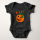 Ce costume de bébé Jack-o'-lantern, orange et noir, branché et sobre, a un sourire heureux sur le visage, et Boo ! écrit ci-dessus. Vous pouvez modifier le texte à l'avant et revenir à un nom ou un message de votre choix. La chemise est offerte en tailles enfants et adultes et en couleurs différentes.