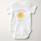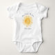 This adorable baby bodysuit features a yellow smiling sun and the phrase "Here Comes The Son" in stylish script typography. It is easily customizable. Original Watercolor © Michele Davies.