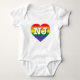 Ce bébé romper présente un coeur de fierté arc-en-ciel orné de lettres majuscules grasses, blanches, NJ, l'abréviation du New Jersey, l'état du jardin. Montrez vos vraies couleurs, soutenez l'égalité de mariage et célébrez le gay pride