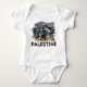 Le design "Palestine" combine une image réelle qui express la lutte palestinienne avec un puissant impact visuel dans un style déchiré qui reflète résilience et défiance. Le design est un message visuel qui incarne la force.