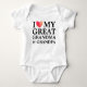 Ce costume corporel doux et confortable I Love My Great Grand-mère And Grand-père! est parfait pour votre petit pour montrer un peu d'amour supplémentaire à leurs arrière-grands-parents extraordinaires. Que ce soit pour une réunion de famille ou juste une journée confortable à la maison, ce costume de corps répand l'amour et la joie. Obtenez la vôtre aujourd'hui et laissez votre bébé célébrer le lien spécial qu'ils partagent avec leur arrière grand-mère et grand-père!