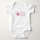 Mignonette petite fille bodysuit avec coeur d'amour rose et des lettres blanches. Le texte dit : "J'aime ma mère de tout mon coeur" et le modèle est mis en place pour que vous customisiez si vous préférez dire maman, maman, maman ou maman par exemple. Un cadeau sucré pour une nouvelle maman pour la Fête des Mères ou un cadeau baby shower pour une maman à être.
