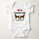 Ce costume personnalisé pour bébé avec la citation "I Love My Two Chocolate Lab Dogs" est parfait pour tout bébé qui aime deux chiens Chocolate Lab.