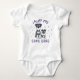 J'adore mon Gong Gong - Body pour nouveau-nés, nourrissons et bébés. Ce mignon body bébé unisexe une pièce est le cadeau idéal pour une fête prénatale pour un futur grand-père ou un cadeau pour un nouveau grand-père d'un nouveau bébé garçon ou bébé fille qui l'appellera Gong Gong au lieu de Grand-père. (Gong Gong signifie grand-père en cantonais.) Les adorables vêtements bébé présentent un petit chien gris avec un grand-père chien gris et des étoiles colorées pastel rouge, orange, jaune, vert, bleu, violet et rose. Le body bébé une pièce dit "J'adore mon Gong Gong" (signifiant "J'aime mon Gong Gong").