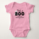 Célébrez la première Halloween de votre bébé avec cet adorable costume rose! Avec l'expression ludique "Peek-a-Boo" et un mignon fantôme surgissant derrière le texte. Personnalisez le modèle pour y inclure l’année et le nom de votre petit, ce qui en fait un souvenir unique. Ce costume corporel est un must pour les débuts éffrayants de votre bébé! Toutes les couleurs sont modifiables. © Kimbellished, LLC